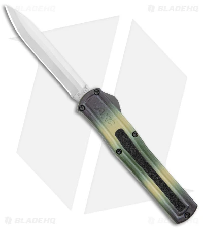 The AKC F-20 is a lightweight, mid-size OTF automatic knife from the Italian company AKC. These knives are made from aluminum with a sandpaper inlay for grip. The dual-action thumb slide has jimping for texture. The firing action is satisfying and powerful! This is a lot of knife for the price!